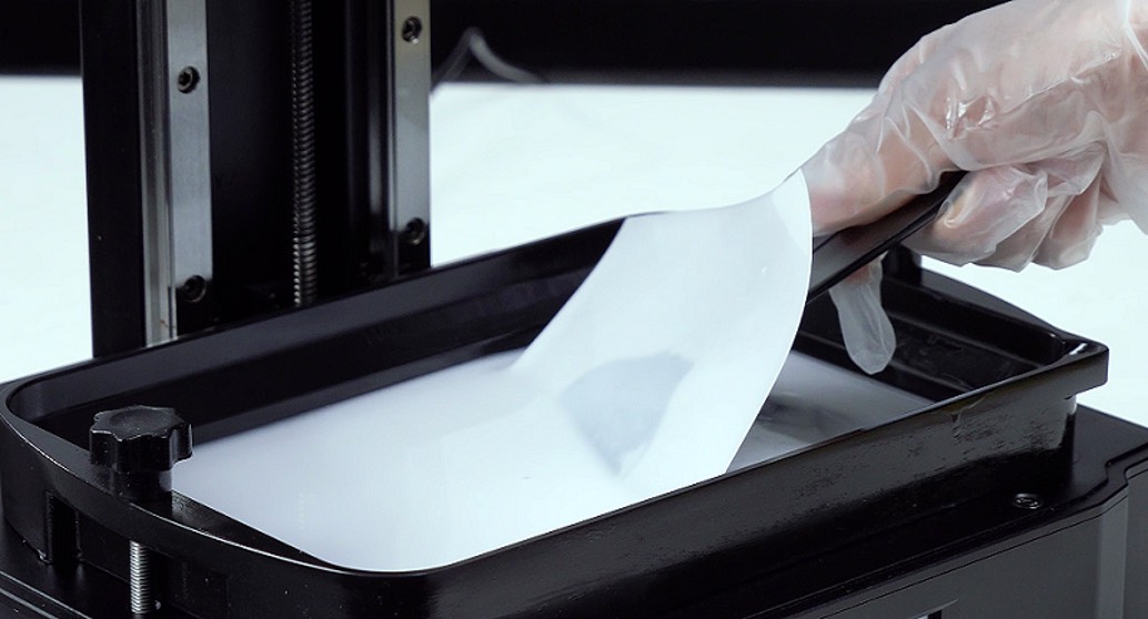 Обычно ванну со смолой необходимо очищать при смене смолы или при сбоях в печати, иначе любые затвердевшие кусочки или мусор, оставшиеся на дне ванны, могут разрушить пленку FEP и повлиять на качество печати при следующей печати.